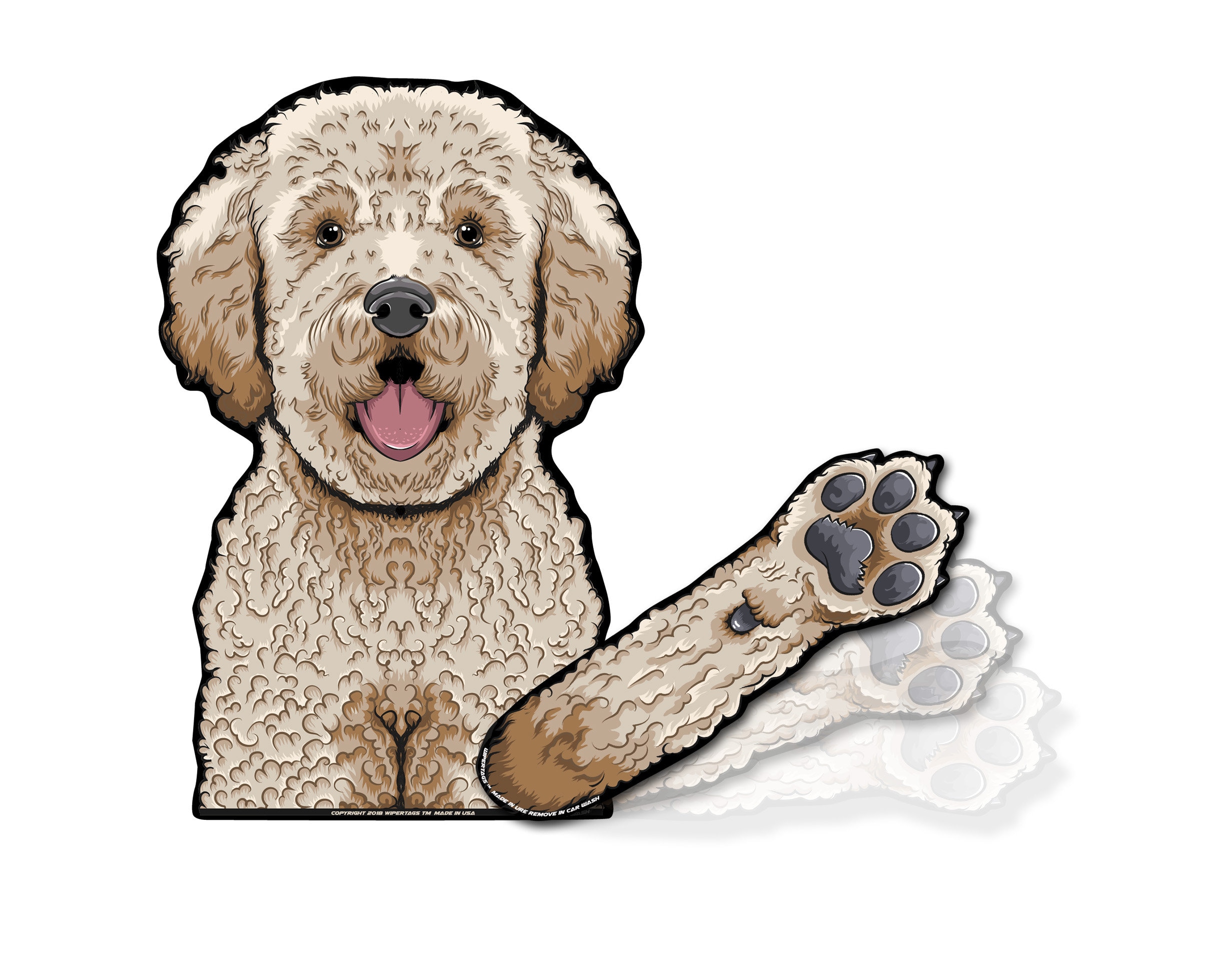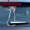 Rear-wiper window decal and detachable WiperTag set featuring a waving doodle paw design. Universal fit for most rear wiper blade arms and can be mounted on lower, top (upside down), or side wipers. Both pieces are removable/detachable and UV protected, with the window decal laminated for extra durability.